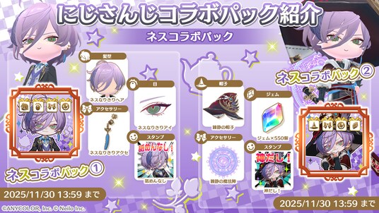 北見遊征、魁星、榊ネスになりきれる髪型や目パーツ、アクセサリーやオリジナルスタンプなどが手に入る期間限定パックが登場!パック1.と2.では内容が変わりますのでお楽しみに。