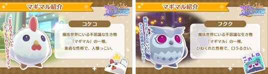 コラボインテリアガチャでは、コラボ限定マギマルの「フクク」や、「コケコ」が手に入るチャンス!マギマルをお世話すると限定マテリアルがもらえるので、学園の交換所で期間限定のコラボアイテムと交換しよう。