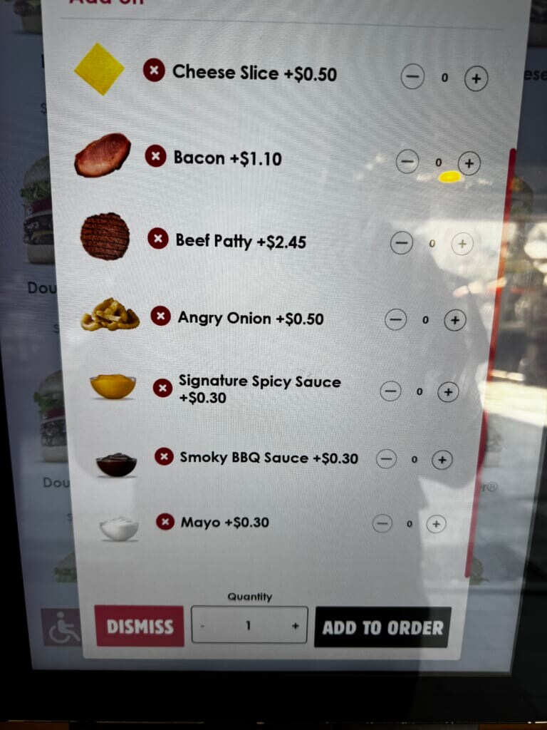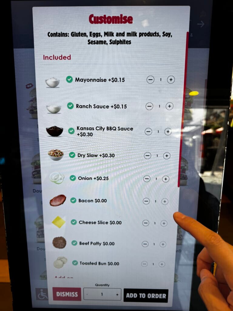 有料であらゆるソースや具材を増量可能。セルフオーダーマシンで、こういう細かいカスタマイズができるのは嬉しい! どうしても細かいオーダーは有人レジになっちゃうからね。万能感あるセルフオーダーマシン、心から嬉しい。