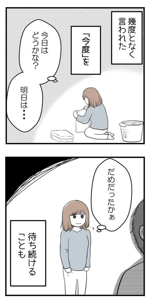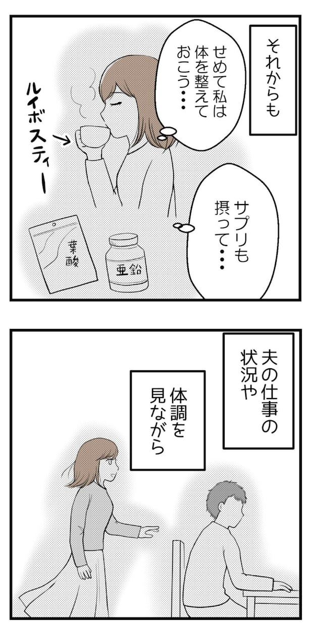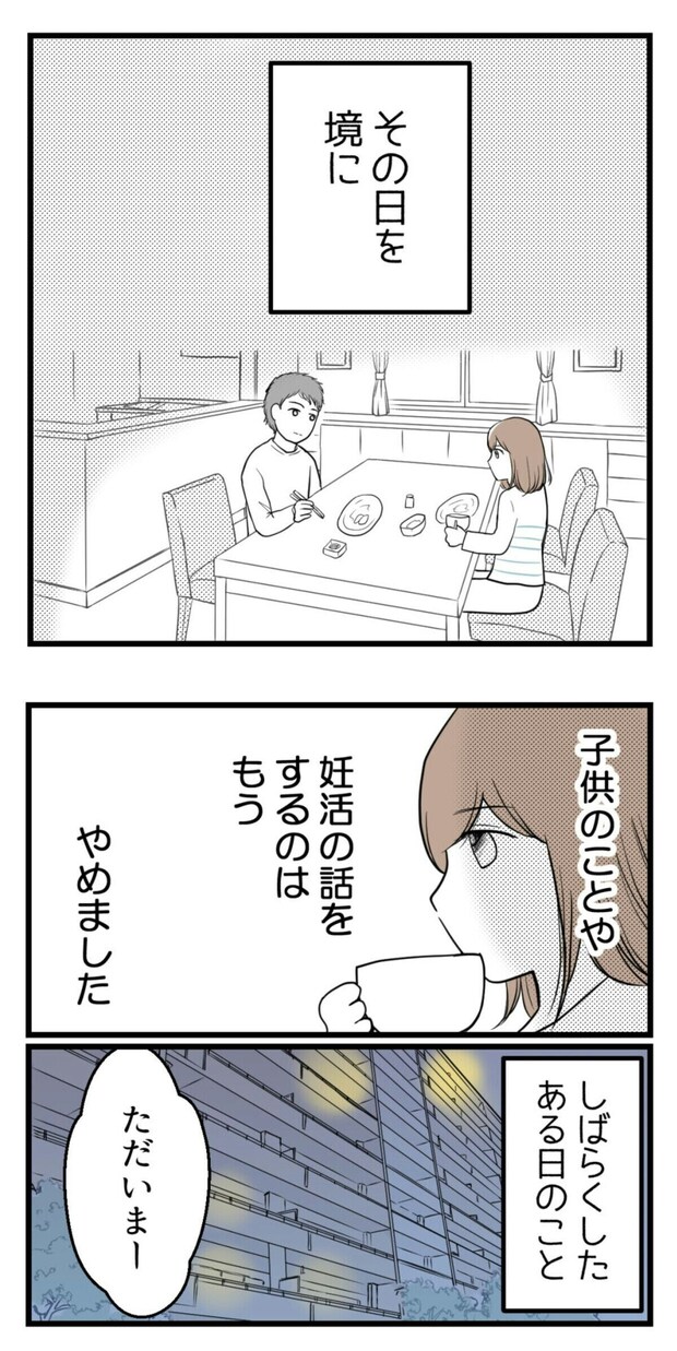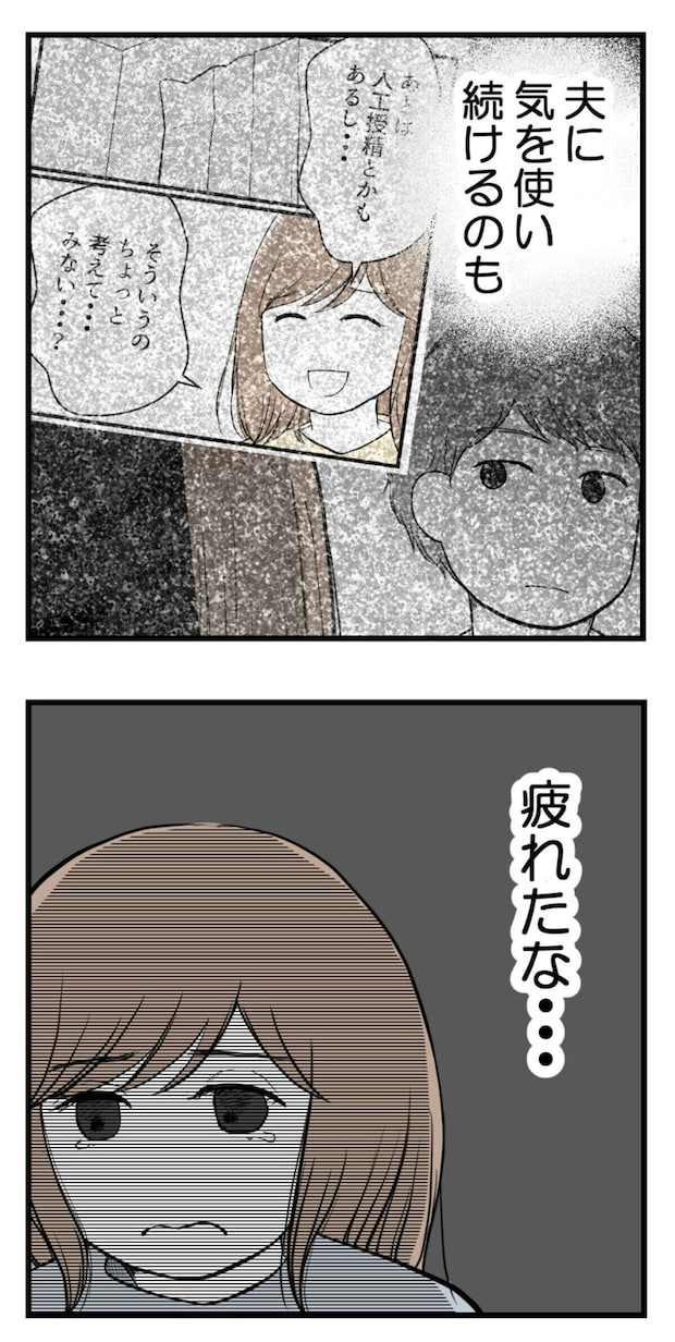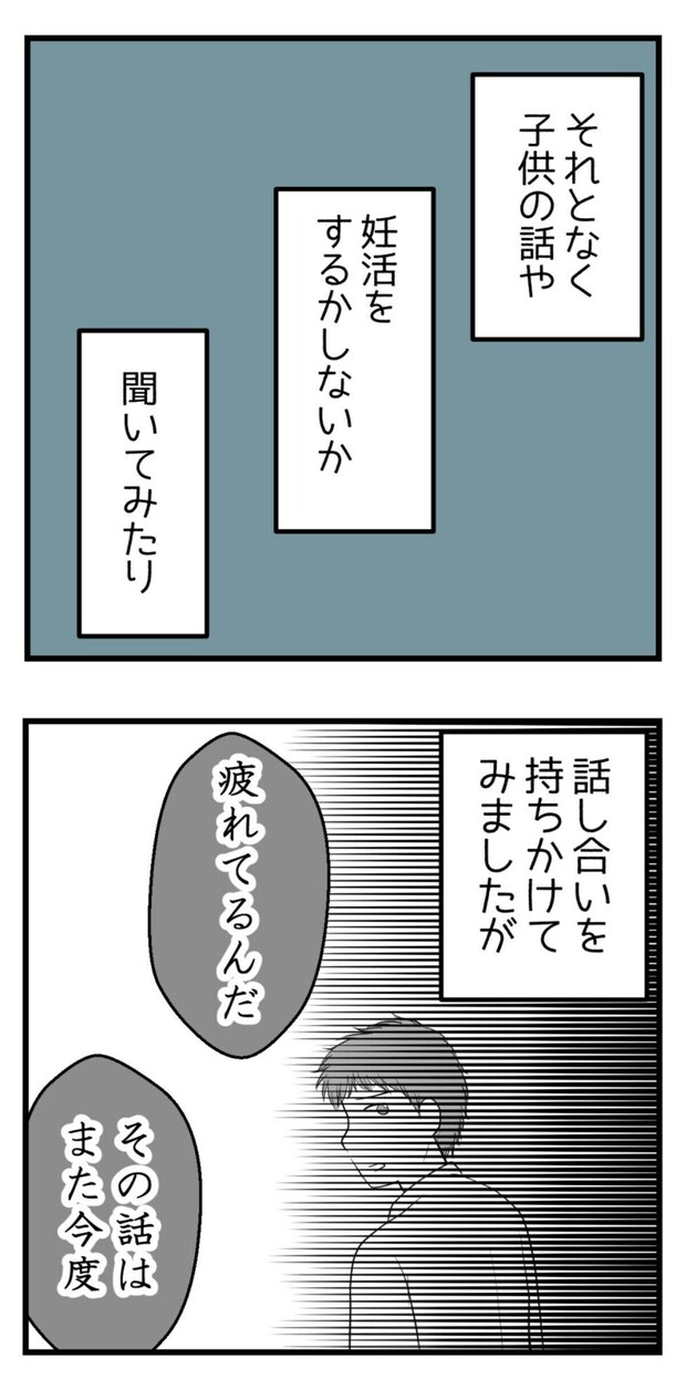 もう疲れたと感じてしまった主人公。夫に妊活の話をするのを諦めてしまいます。