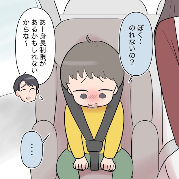 するとタイガ君が「シンジおじさん、今日ジェットコースター乗りたい!」とシンジに声をかけます。それを聞いたケンシンが「ジェットコースター?」と首をかしげると、タイガ君は「ケンシンは背が低いから乗れないぞ?俺とおじさんだけ」と、ケンシンをさりげなく仲間外れにしました。