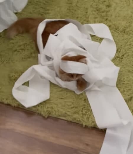 そこにはトイレットペーパーで遊びまくって