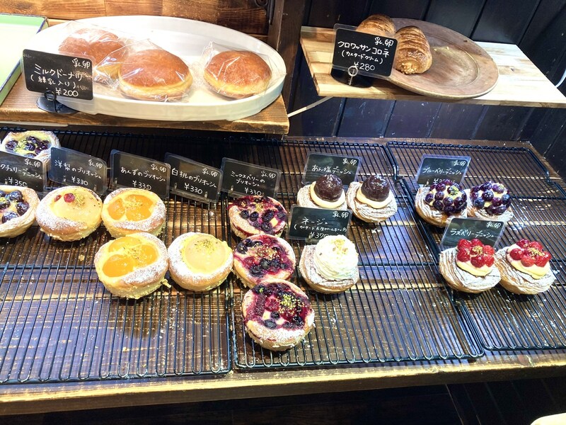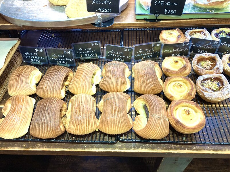 右側の台にはデニッシュ、ブリオッシュ、パンスイスなどのスイーツ系が並んでいます。