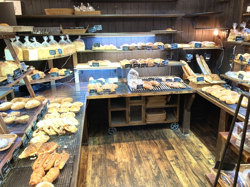 お店の左横にはベンチが置かれていて、購入した焼きたてのパンを頂くことも可能です。パンのお供のドリンクは、お店では販売されていませんが、すぐ近くのコンビニエンスストアで購入することができます。