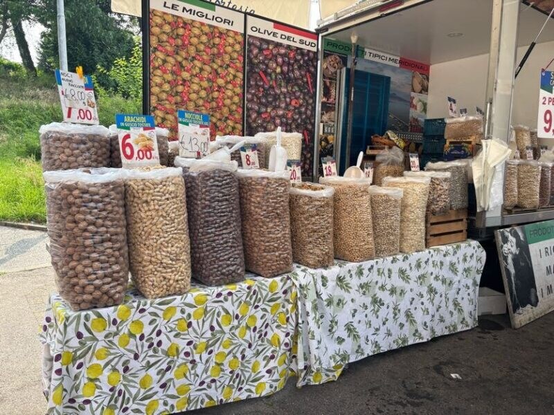 常設市場のほかに、定期的に広場に店が集まったり、お祭りのように道に店が並んだり。にぎわう光景に、自然と気持ちが高まります。屋内の常設市場には専門店も多くあり、こだわりのオリーブオイル、スパイス、ワイン、野菜など、ありとあらゆるものがそれぞれの店に所狭しと、でもおしゃれに陳列され、ワクワクが止まりません。