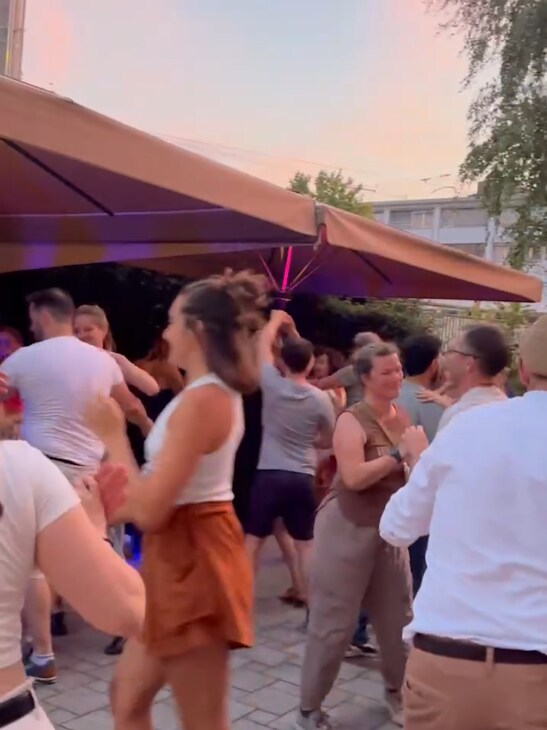オーストリアのインスブルックでは、バーの屋外テラスでドリンクを片手にサルサを踊りました。サルサはキューバ発祥のラテンのペアダンスです。「英語を話すよりサルサを踊る人口の方が多いから、サルサをやれば世界中の人と友達になれる」。その言葉通り、イタリア、ドイツ、ポーランド、コロンビアなどたくさんの国の人たちとダンスを楽しみました。