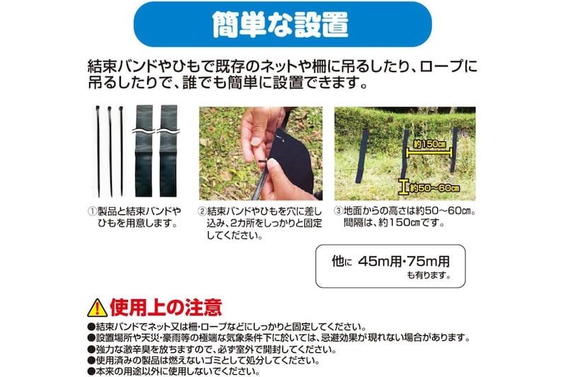 アウトドアだけでなく、畑やゴミ置き場などの獣害対策にも応用できます。