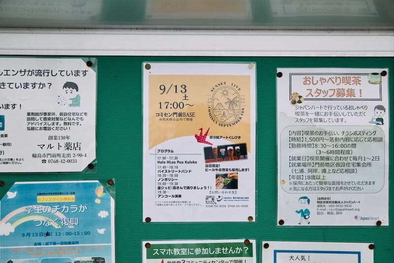佛子園は輪島市内にある仮設住宅の計3カ所に、まさに「輪島KABULET」のミニ版ともいえる「コミセンBASE」を開設しました。「コミセンマリンタウンBASE」「コミセン門前BASE」「コミセン鳳至(ふげし)BASE」と名付けられた施設は、日々地域の人たちが集い、活気があふれています。