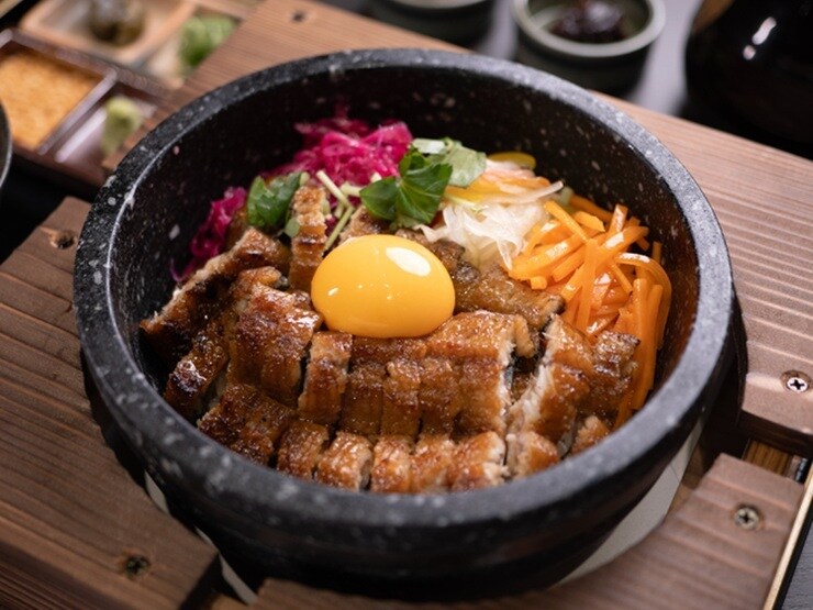 蓮池町通駅から徒歩5分の場所にある【鰻FUJI】は、2025年7月にオープンしたばかりの鰻専門店。極上の国産鰻を、熟練の技で最適な焼き加減に仕上げて提供しています。『石焼まぶし』や『鰻丼』のおいしさもさることながら、鰻の骨からだしをとり四万十鶏の鶏ガラで仕上げた『鰻骨白湯ラーメン』も絶品。ここでしか味わえないメニューで、一日10杯限定です。