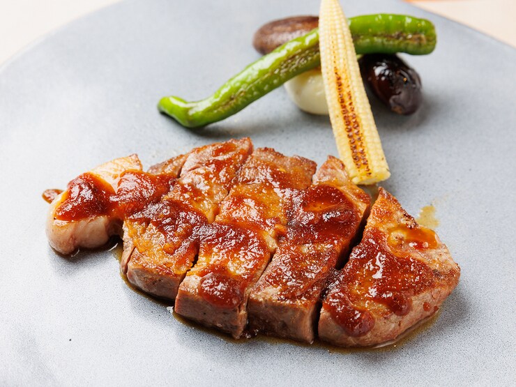 【鉄板ビストロ ENcounter】は、蓮池町通駅から徒歩5分。カウンター席6席のみの空間で、カジュアルに鉄板焼を満喫できるお店です。オススメは、鉄板焼でアレンジした個性ある鰹のタタキと、高知県産「ゆず豚」ロースの生姜焼き。少し贅沢をしたい日に最適な、厳選黒毛和牛ステーキがメインのコースも用意されています。