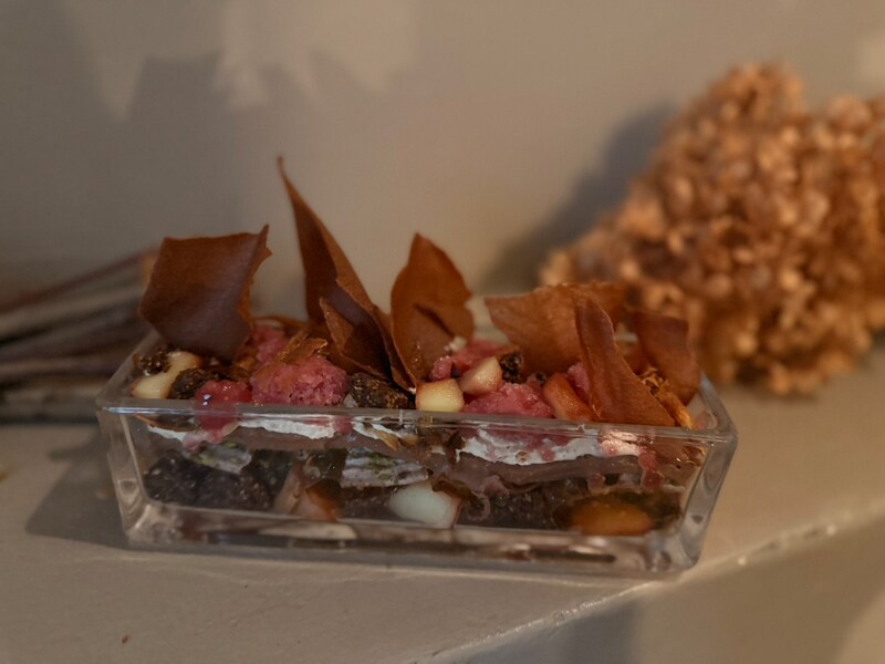 ・ナッツをあしらった黒胡麻カカオメレンゲ