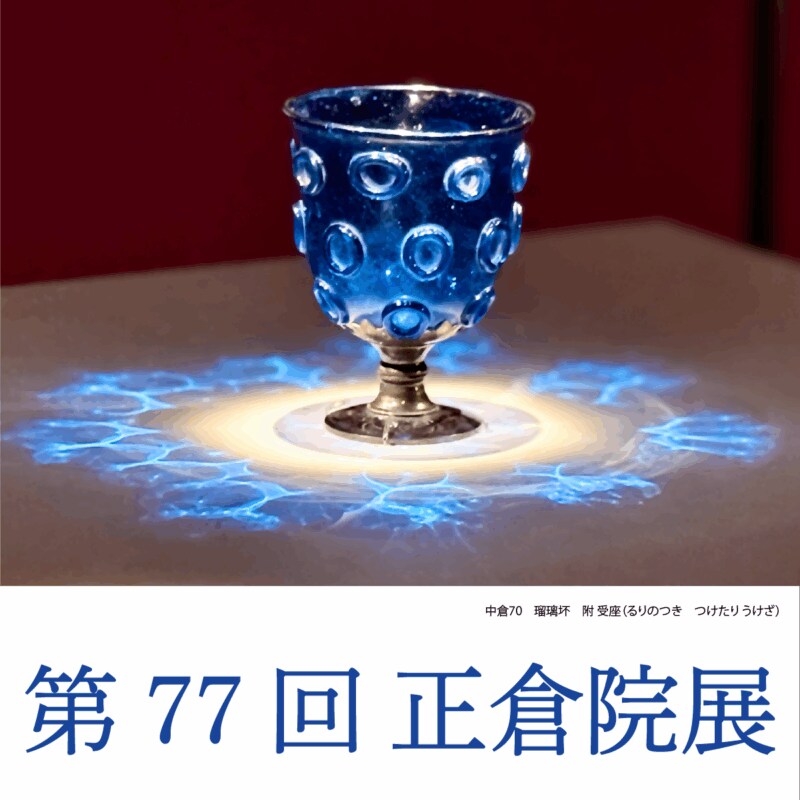 第77回 正倉院展のメインビジュアルにも使われているのが中倉70「瑠璃坏 附 受座(るりのつき つけたり うけざ)」。ライティングが素晴らしく、こんなにも透明感があってつややかなんだ! といつまでも離れたくない美しさでした。