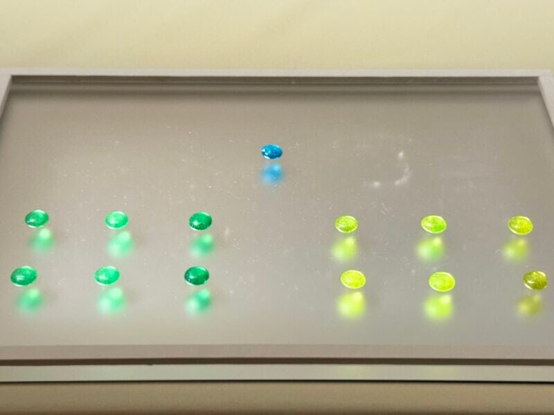 北倉18「藍色瑠璃双六子(あいいろるりのすごろくし)」:上1枚、「浅緑瑠璃双六子(あさみどりるりのすごろくし)」:右下6枚、「緑瑠璃双六子(みどりるりのすごろくし)」:左下6枚は、いずれもガラス製の双六の駒。