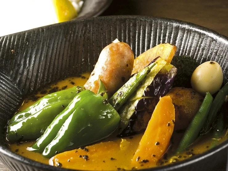 野菜や肉、減農薬栽培の米など、地元の食材を使った料理を提供している同店。15種類にもおよぶスパイスとげん骨、牛骨、丸鶏に北海道産を中心とした野菜を10時間以上煮込んでできたスープは化学調味料不使用で絶品です。エゾシカ肉や真狩産ハーブ豚など、新たな食の発見を楽しめるスープカレーをぜひ。