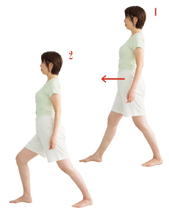 両足を前後に開き、前を見たまま、前脚に体重を乗せます。