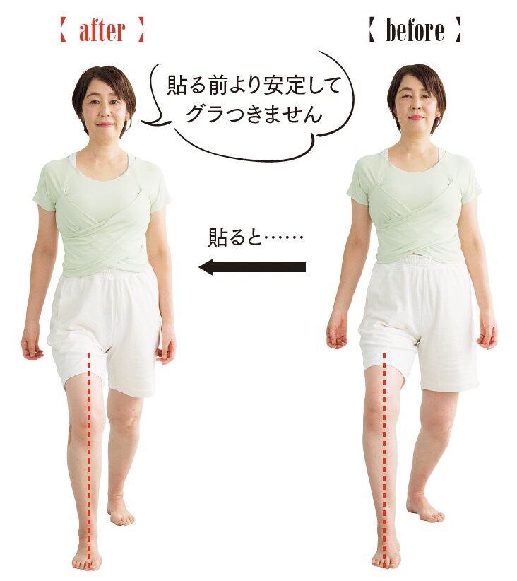 Afterでは、足の人差し指のほぼ真上のラインにひざがくるように。