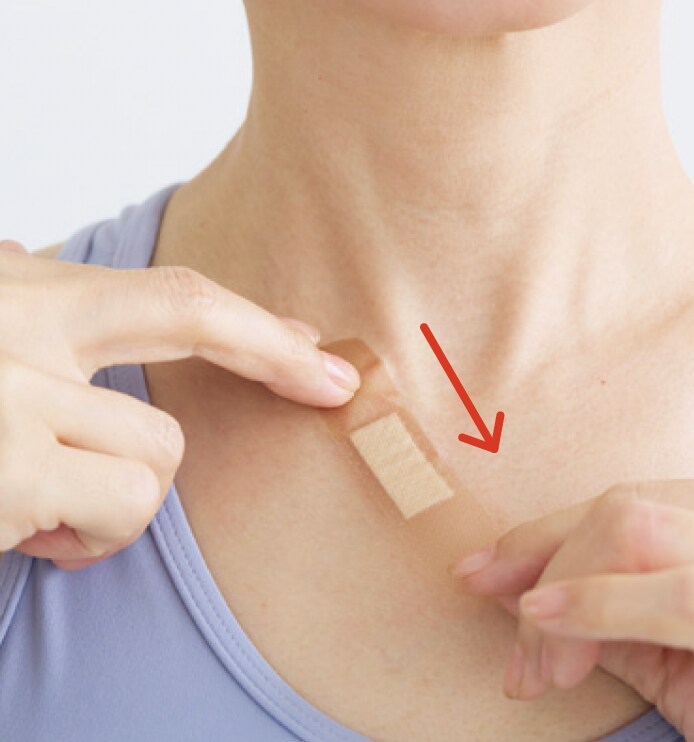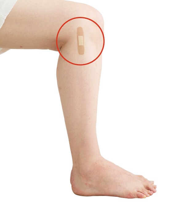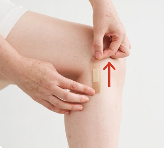 このコリコリを絆創膏で覆うように、ひざの下から上に向かって貼ります。