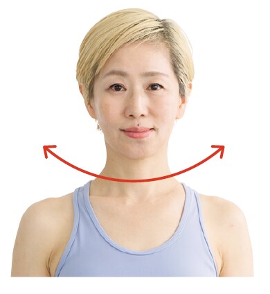 左右を向くように首を動かし、どこまでラクに動かせるか、可動域をチェックします。