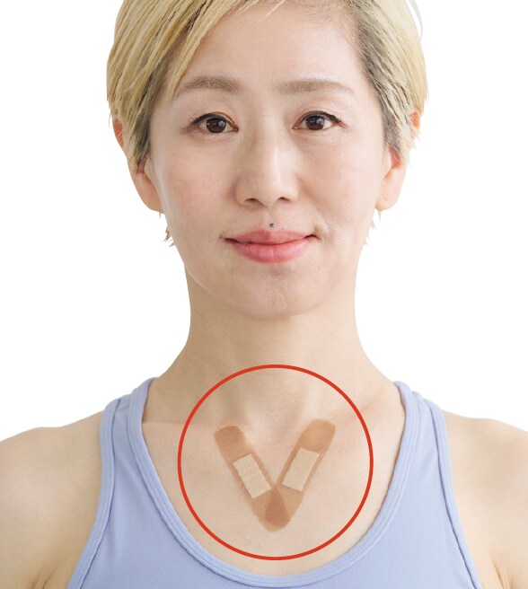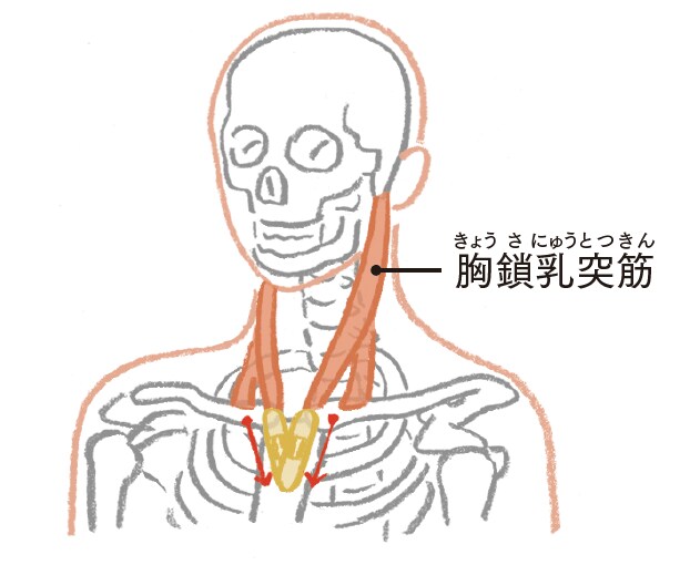 すると、「胸鎖乳突筋」などの首の筋肉が、ガチガチに硬くなってしまいます。そこで、鎖骨に付着する胸鎖乳突筋をゆるめ、自律神経のバランスを整えます。