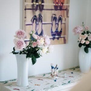 花を飾ること。それは毎日の暮らしに彩りをもたらしてくれる素敵な習慣。ダイニングテーブルや書斎、キッチン、お気に入りのコーナーなど、花との暮らしを満喫している、アクセサリー作家・山本亜由美さんに、日々の風景を見せてもらいました。
