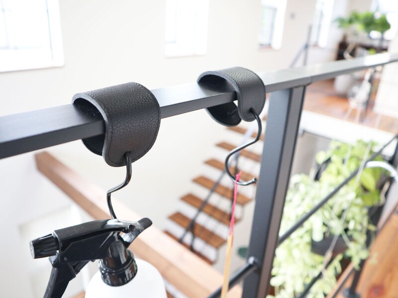 飾りながら見せ掃除グッズをかけたり、観葉植物のお手入れグッズも使いやすい位置にスッとかけることができます。