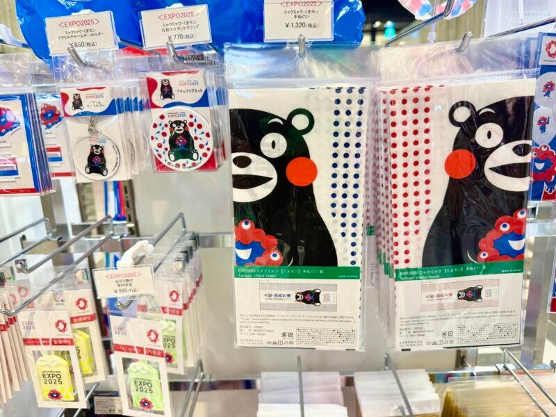 「万博会場内にはありませんよ……!」と教えてもらったのが、熊本県のPRマスコットキャラクター「くまモン」コラボグッズ。