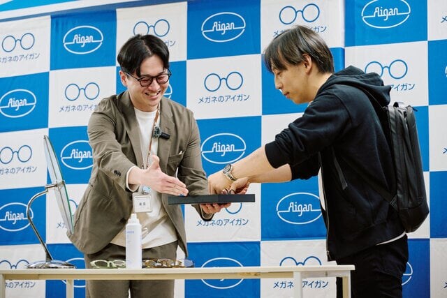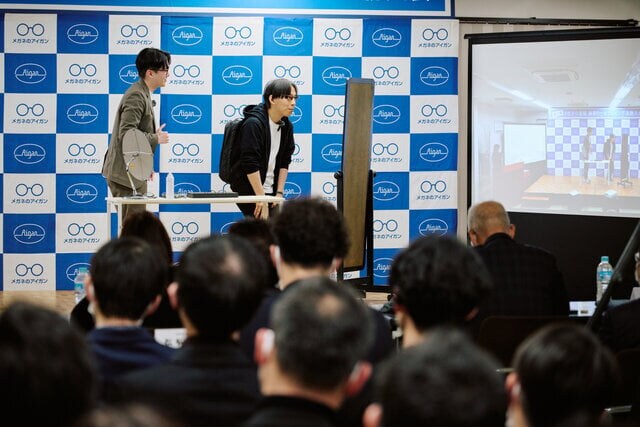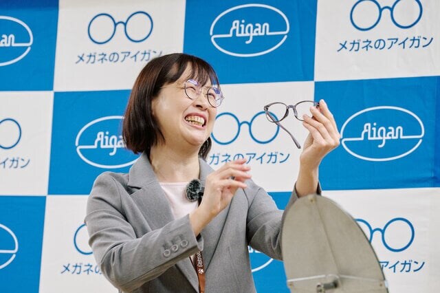 また、ライブに行った後に温泉へ行くつもりだというお客様役の言葉を聞いて、お風呂・サウナ専用メガネ「AIGAN FORゆⅡ(度付き)」を紹介。はつらつとした接客の様子に、客席からも自然と笑みがこぼれるようなロールプレイングを見せてくれました。