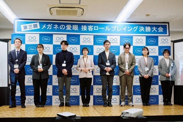 愛眼は、2025年6月現在で全国218店舗を構え、1000名を超えるスタッフがお客様に寄り添った接客をおこなっています。お客様に更に満足いただけるよう、3年前より自社で『接客ロールプレイング大会』を開催。全国から予選を勝ち上がったスタッフが優勝を目指し、力を注いでいます。今回は3回目となる『接客ロールプレイング大会』の様子をレポートします。