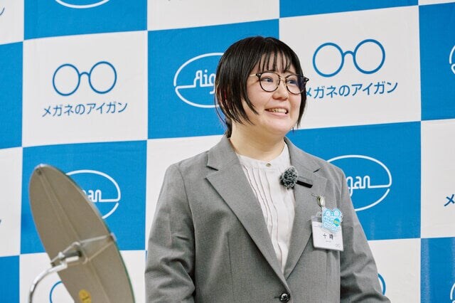 最後に登場したのは、イオンモール幕張新都心店の十時。常連として登場したお客様役と、序盤から楽しそうに話をする十時。ゲームのヘッドセットをつけた際に違和感のないメガネを探しているというお客様役の悩みに共感。その後、柔らかい素材でできている「smart fitシリーズ」を提案し、機能性を丁寧に説明していました。