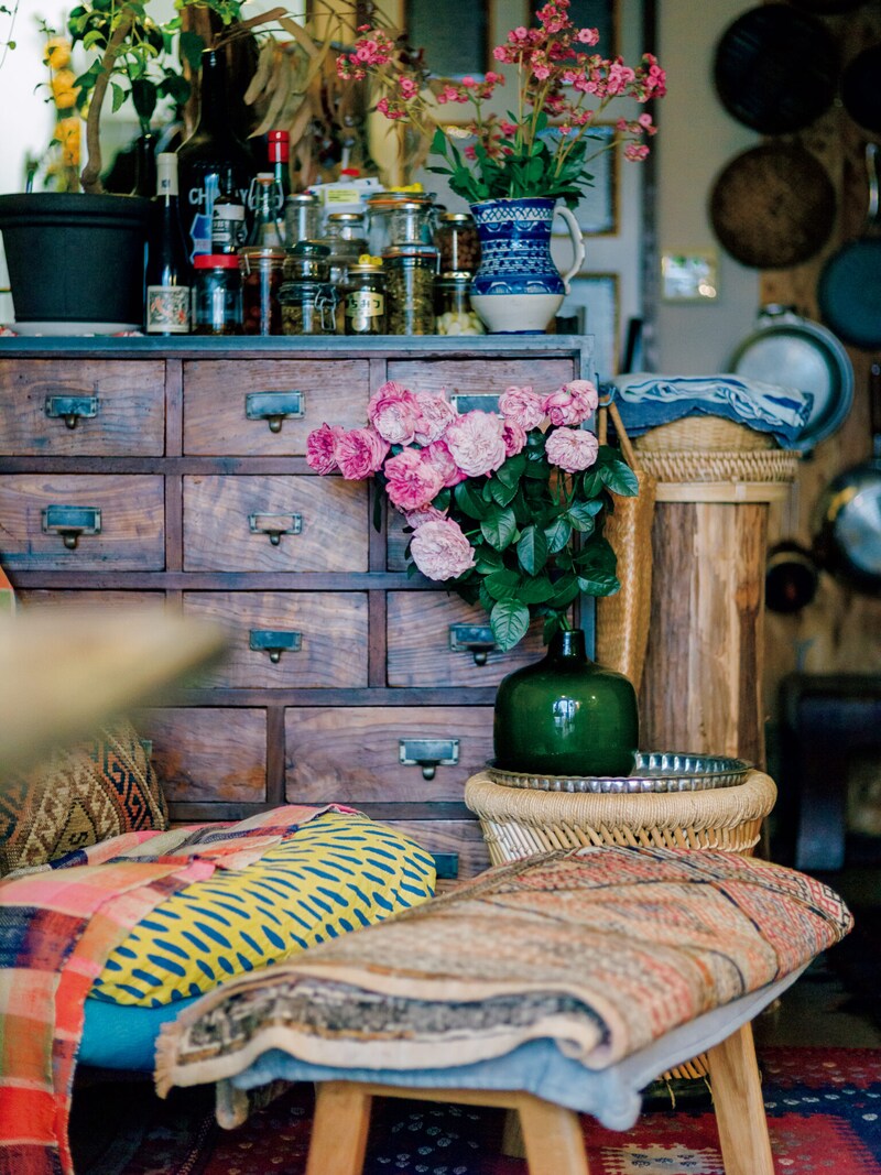 花を飾ること。それは毎日の暮らしに彩りをもたらしてくれる素敵な習慣。ダイニングテーブルや書斎、キッチン、お気に入りのコーナーなど、花との暮らしを満喫している、アクセサリー作家・山本亜由美さんに、日々の風景を見せてもらいました。 &Premium特別編集(2023年4月発売)「花と緑を愛でる」より、webで特別に紹介します。 パッと目を引くピンクのバラを“森”の真ん中に。 「ゼラニウムでしょう、ミモザ、ナニワイバラ、シナモン、あっちにヒスイラン、カラマンシー……」 山本亜由美さんが、家で育てる花や木の名を挙げていく。切り花も枝付きもフレッシュもドライも合わせれば、室内にもベランダにも花が満開だ …