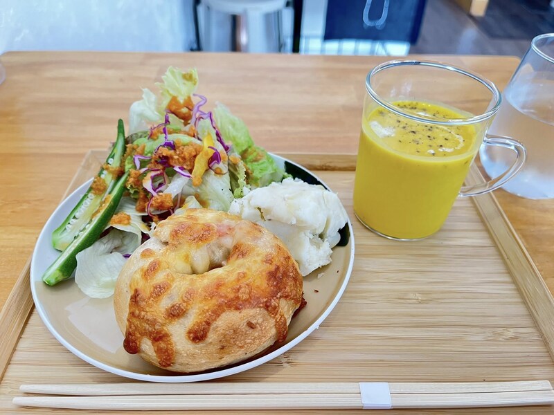 お昼時に訪店し、ベーグルにサラダとスープがつく、ベーグルランチを頼んでみました。