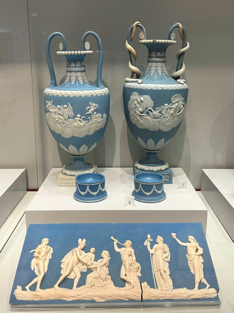 古典美術からインスパイアを受けて作られた陶器だといい、特にブルーに白いレリーフが施されているものが有名です。