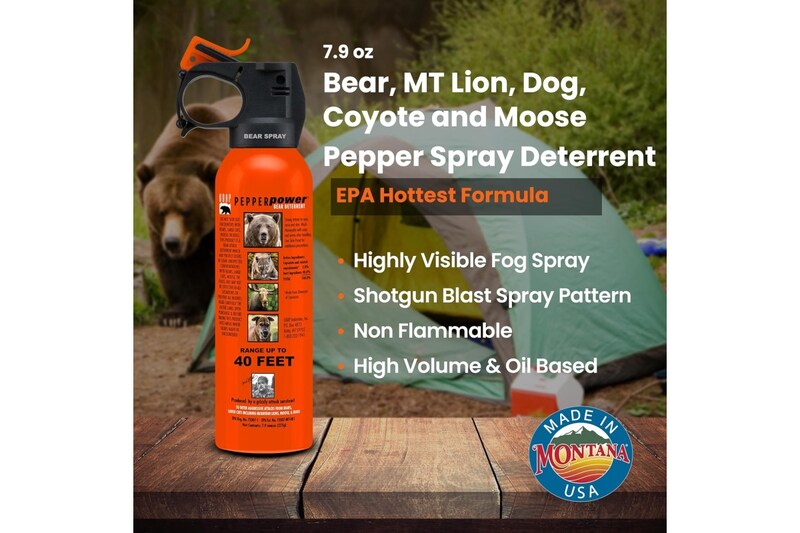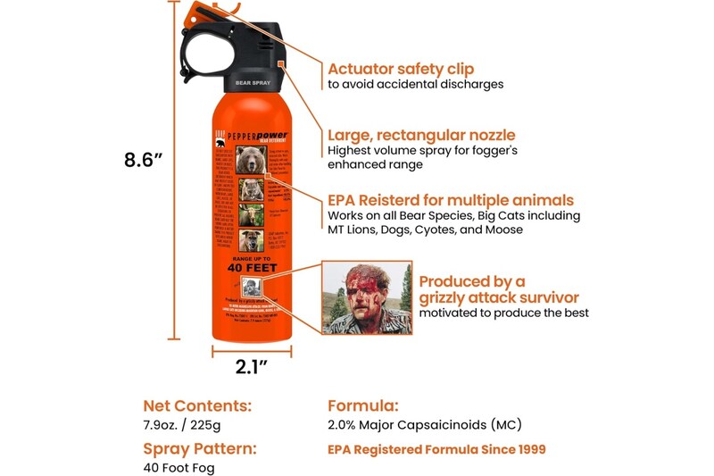 Amazonでみるキャップを外してトリガーを引くだけで、強力な唐辛子成分(カプサイシン)を含むスプレーが霧状に広がり、熊が接近する前に退散させることができます。