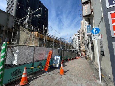 西武新宿線高田馬場駅、早稲田口の改札を抜けてまっすぐ駅を出ると、目の前に早稲田通りがあり、横断歩道を渡った先に、不法占拠の店舗が並んでいた路地が見える。駅から徒歩1分以内の好立地だ。取材のために訪れた日(2025年10月某日)は、撤去工事の真っ最中だった。