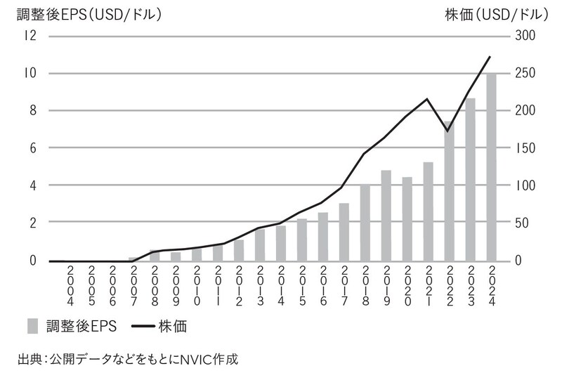 [図表2]VisaのEPS成長と株価