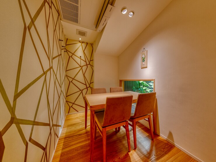 出町柳駅から車で10分、銀閣寺や哲学の道にほど近い【日本料理 藤井】は、和の風情が漂う日本料理店。京町家を改装した店内は、街の喧騒を忘れる落ち着いた空間になっています。4名用のテーブル席完全個室は、和モダンな雰囲気。8名の個室として利用できる掘りごたつ式の座敷は、京都らしい純和風の設えです。