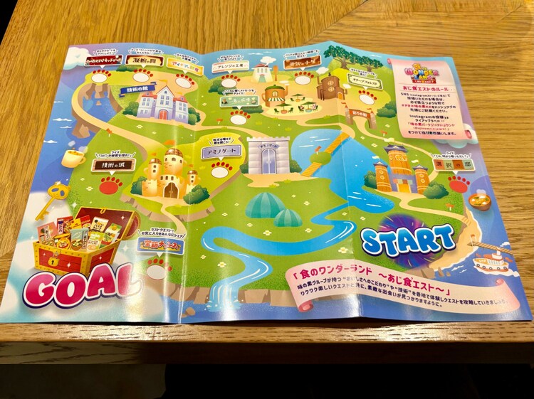 年2回行われる味の素グループの新製品発表会。単なる試食会にとどまらず、来場者がゲーム感覚で体験できる演出が毎回好評です。今回のテーマは「食のWONDER LAND ~あじ食エスト~」。配られたマップを手に、各ブースを巡りながら試食や説明を体験。スタンプを集めることで「クエスト攻略」が達成される仕掛けになっており、ワクワク感とともに新商品の魅力を発見できました。