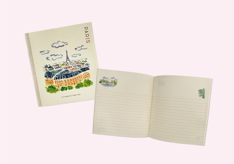 先日取材をしたイラストレーターのパリジェンヌが、カルネ・ド・ヴォワイヤージュと呼ばれる旅ノートを見せてくれた。旅先で心に触れた風景を描いたり、写真や美術館の入場券を貼ったり、感想などを綴ったりしたもので、旅先を再訪するときにとても便利、とのこと。早速文房具店にノートを買いに行ったところ、韓国の文具メーカーが展開する〈ラプレ・ミディ〉の旅ノートシリーズを発見。人気イラストレーター、ウーランがパリのさまざまな風景を描き、大サイズはパリ全体と、ノートルダム大聖堂周辺の2種を展開。罫線、白紙、格子などさまざまなページがあり、ToDoリスト付き。小サイズは持ち運びしやすいので、パリ散歩のお供に欠かせなくなりそうだ。