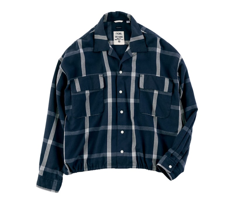 ハワイの伝統的な柄である「パラカチェック」が目を引くシャツは、〈ナナミカ〉から。オープンカラーとゆったりとした身頃に、適度な抜け感が漂う。裾にはドローストリングが施されているので、着こなしに合わせたアレンジも楽しめる。温かな手触りのフランネルコットン素材で、ライトなアウターとしても活躍。ネイビーのほかにブラックもあり。
