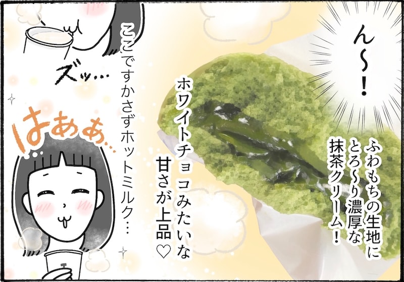濃厚な抹茶クリームがとろりと流れ出す「森半監修 抹茶ショコラまん」。ホットミルクと一緒に堪能してみてくださいね!