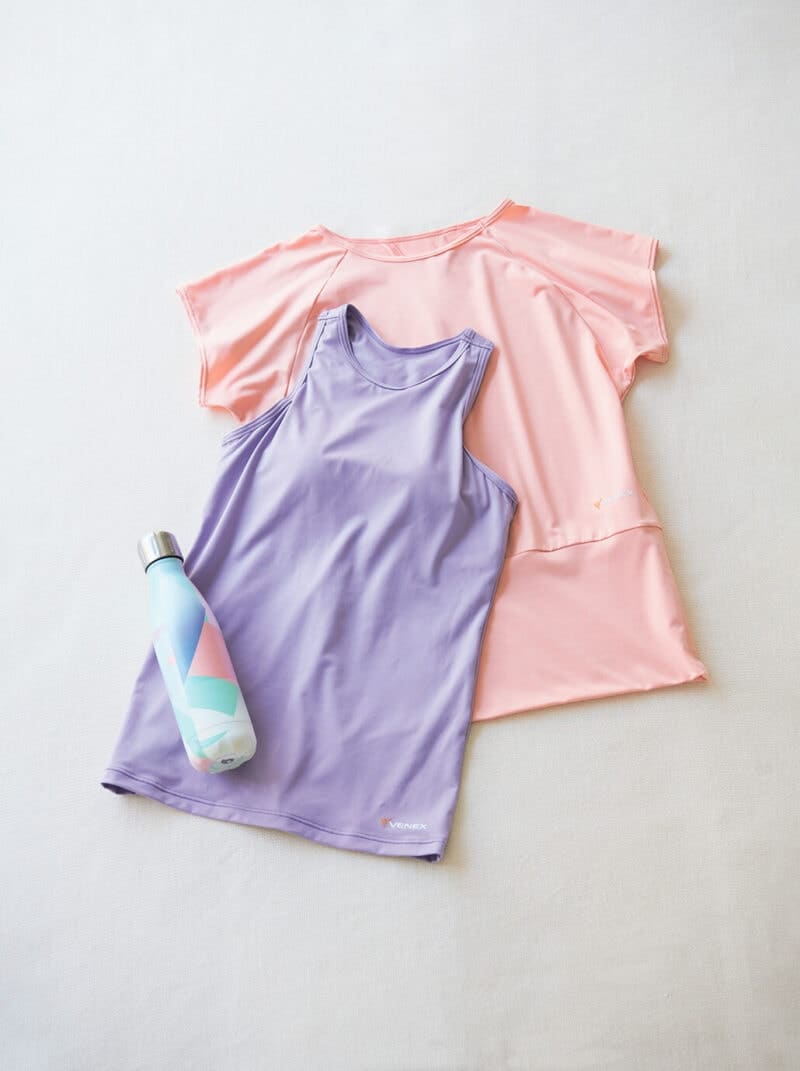 バックオープンTシャツ 全2色 ¥13,200、カップ付きタンクトップ 全2色 ¥13,200/ベネクス