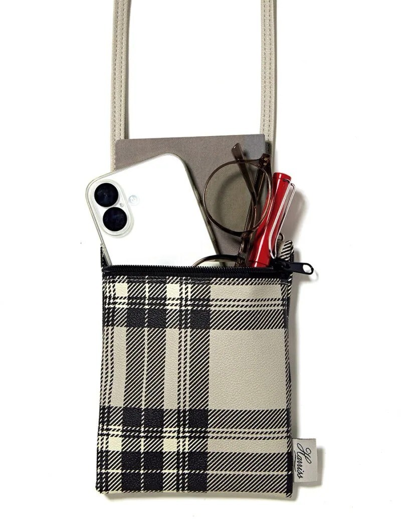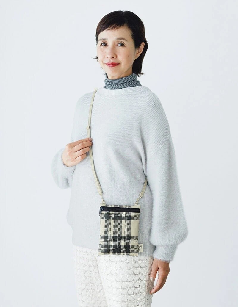 モノトーンの大判チェックが大人っぽく、コーディネートのアクセントにもなるポシェット。