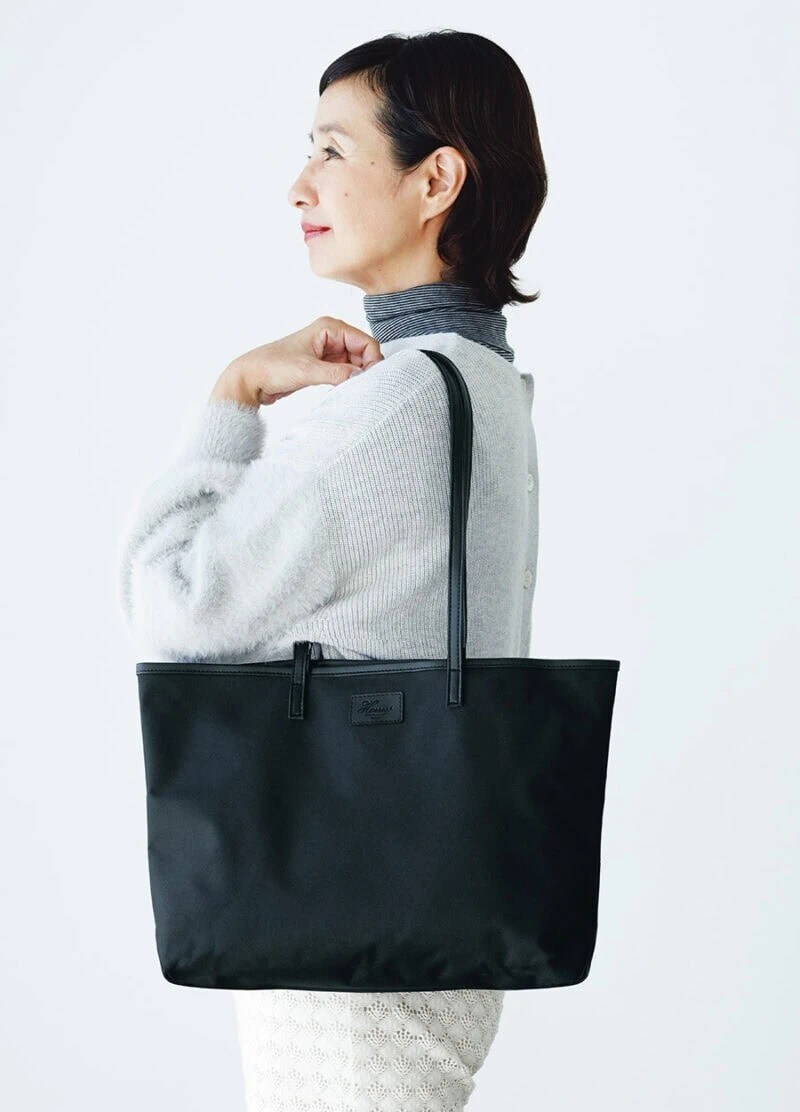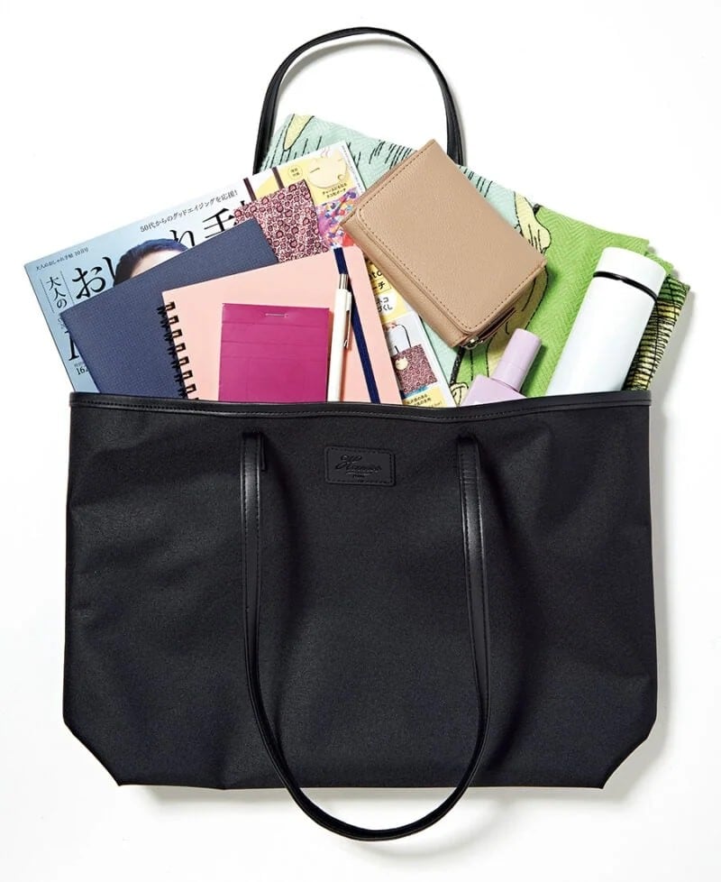 シンプルな黒のトートは、服や人を選ばず使いやすいのが◎。