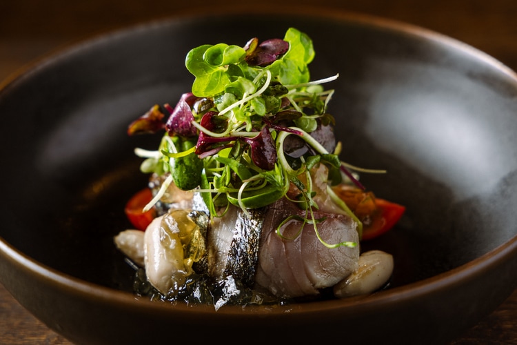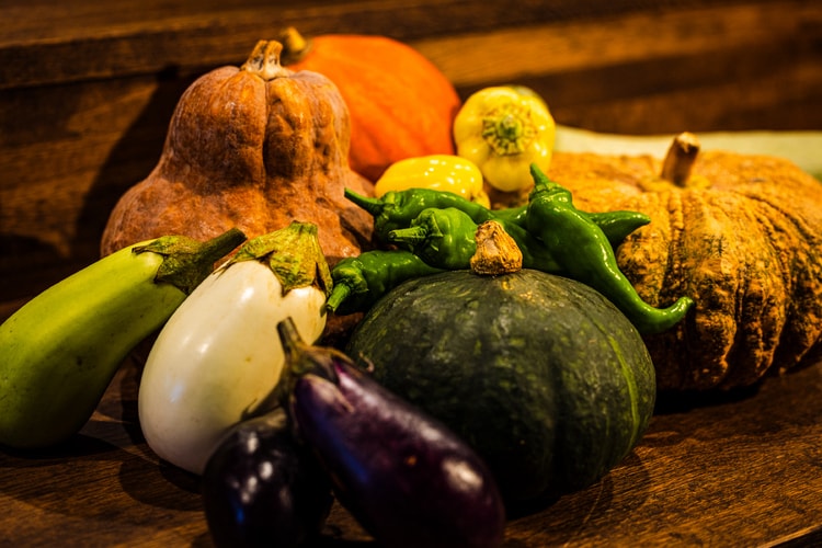 野菜は、大和田氏の故郷である千葉県柏市の「Yoshino Herb Farm」から。風味の豊かさと瑞々しさが特徴で存在感も抜群ですので、薪火とも好相性です。かぼちゃやなすひとつとっても多彩で初めて耳にする品種も。9月のコースで提供していた前菜『秋鯖 茄子 おおまさり』で使用していた「おおまさり」は、千葉県産の大粒で甘みの強い落花生。パンも自家製のほか、千葉県松戸市の【Zopf(ツオップ)】から取り寄せています。