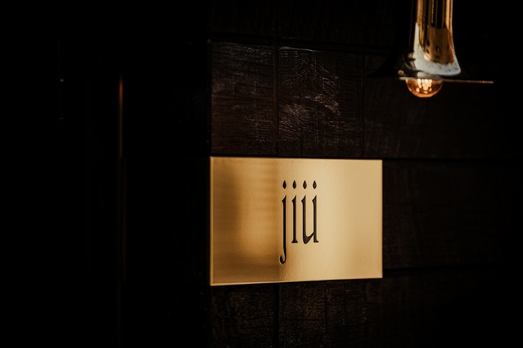 店名【jiü】にデザインされた4つの点は雨でもあり炎でもあるそう