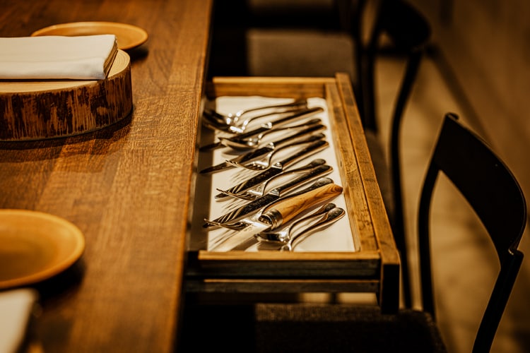 カウンターの引き出しを開けるとカトラリーが美しく並びます