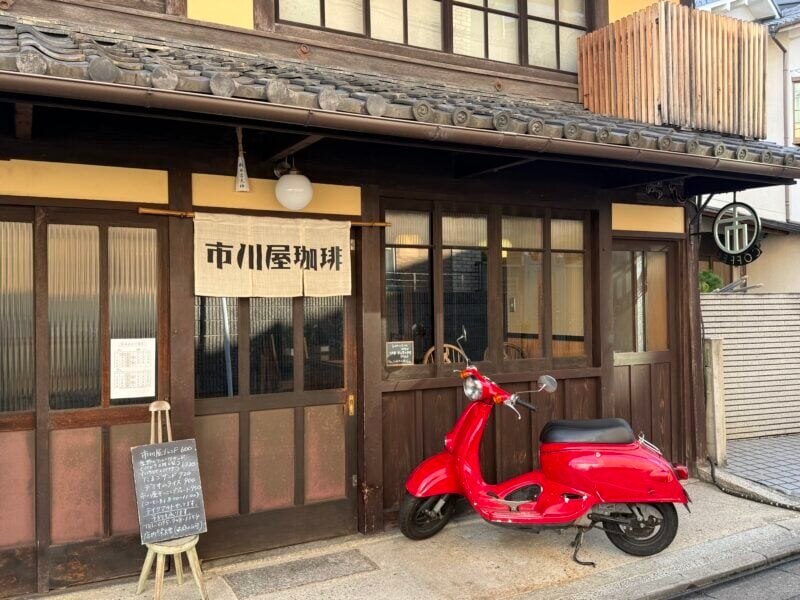 河井寬次郎記念館で心が満たされたら、今度はおなかがすきました。記念館から歩いて数分のところにある、市川屋珈琲へ。店主・市川陽介さんのお祖父さんが陶芸工房としていた築200年ほどの町家を改装した珈琲屋さんです。