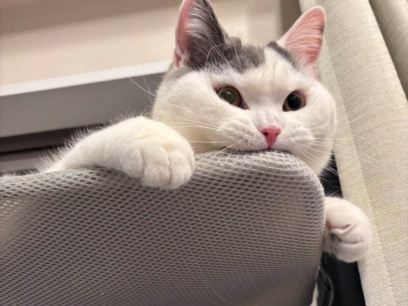 こんにちは。ボクはうずら。ブリティッシュショートヘアの1歳の男の子。5kg越えの、鍛えられたたくましいボディのもちぬしだよ。食いしん坊で、走り回ったり、イタズラが大好き。あとは、おっとり系兄ねこのハクマルのことも大好き。腰にある柄がおそろいなんだよ。でも性格は真逆なんだ。本誌2025年12月号にて、わたなべとしふみさんによるうずらの紹介イラストを掲載しています。
