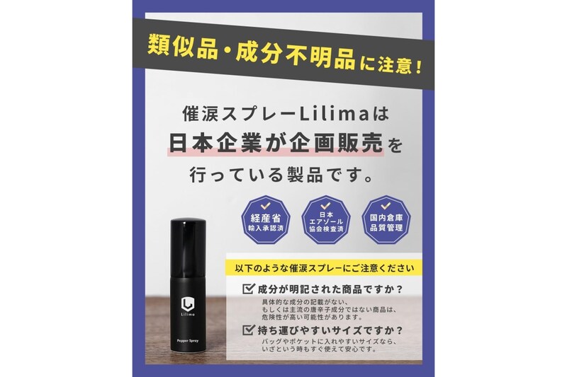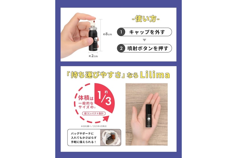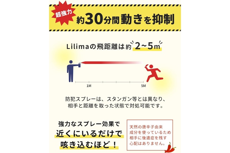 登山や夜道の防犯対策として人気なのが、「Lilima 催涙スプレー」です。