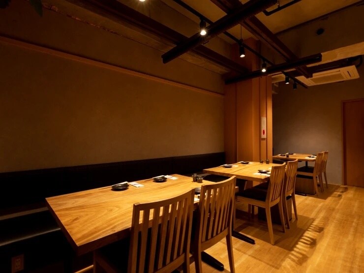 ランチは福岡名物明太子を丸ごと1本使用した「明太子の天ぷら」と甘辛いタレで仕上げる和牛の「焼きすき」がコラボレーションした『明太天和牛焼きすき重』がオススメ。コの字形カウンター席とテーブル席がある店内は、オシャレで落ち着いた雰囲気。8名まで入室可能な個室もあるので、少人数の食事会にも最適です。